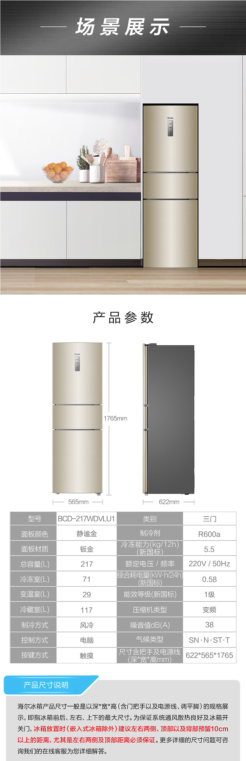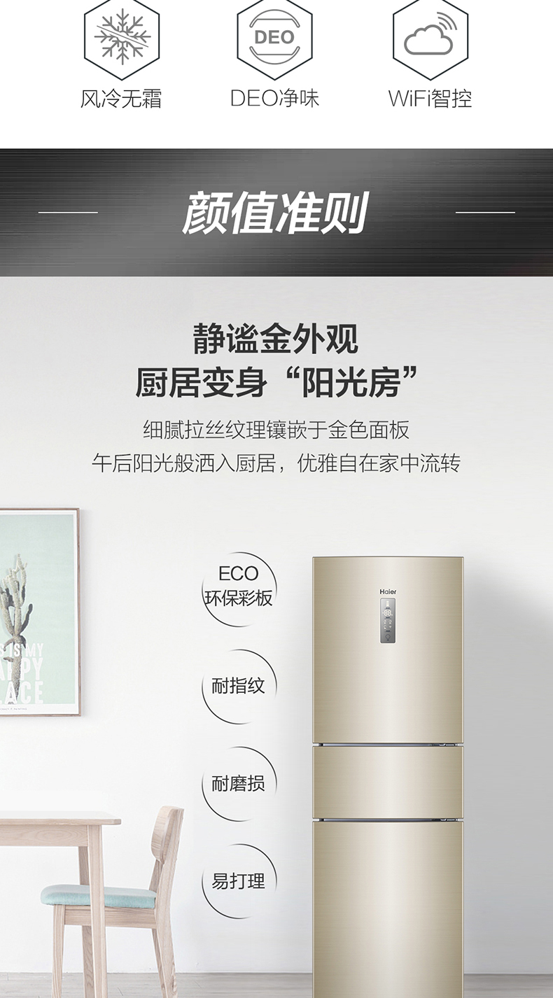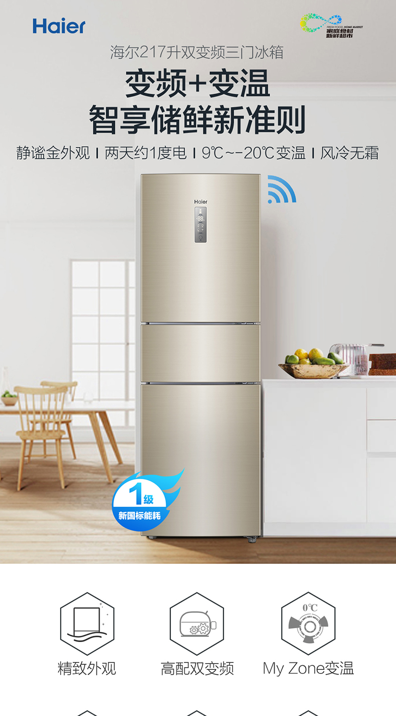 Haier/海尔 BCD-217WDVLU1三门双变频智能风冷节能小型家用电冰箱