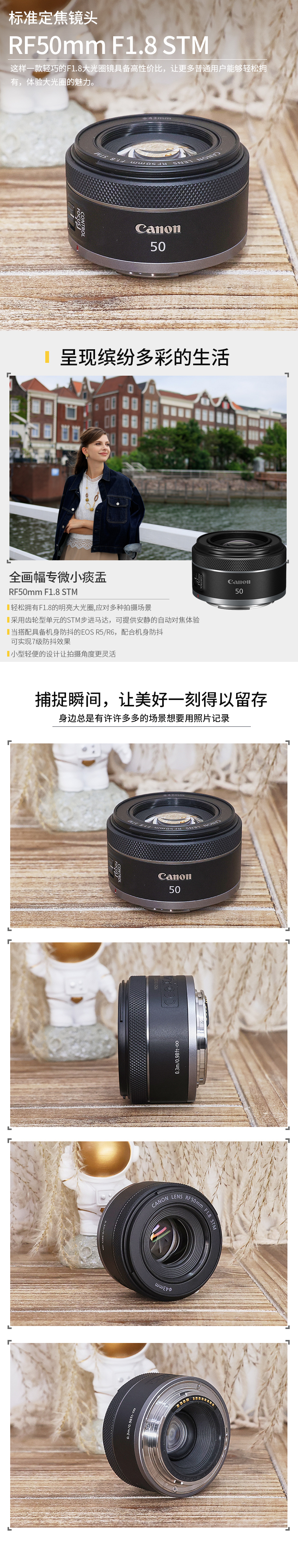佳能RF50mm F1.8 STM标准定焦镜头EOS R RP R5 R6人像大光圈镜头rf50 1.8全画幅专微小痰盂